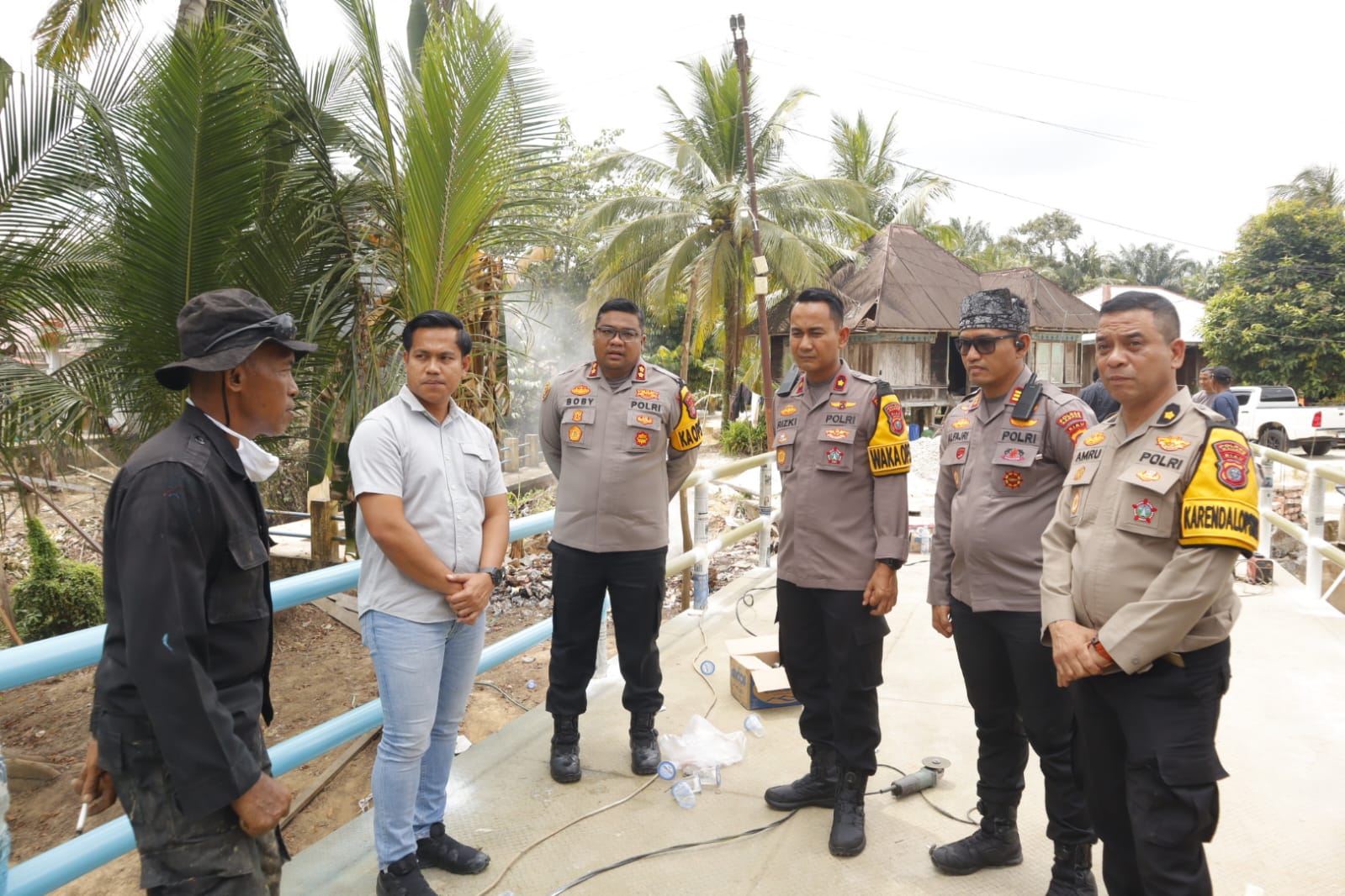 Kedatangan Kapolres Kampar yang didampingi Wakapolres Kampar dan PJU Polres Kampar, disambut hangat oleh personel Satgas Darurat Polda Riau pembangunan jembatan, Kepala Desa Gobah, dan masyarakat setempat. Dengan senyum yang ramah, Kapolres langsung meninjau perkembangan renovasi jembatan yang menjadi urat nadi penghubung bagi masyarakat Desa Gobah.