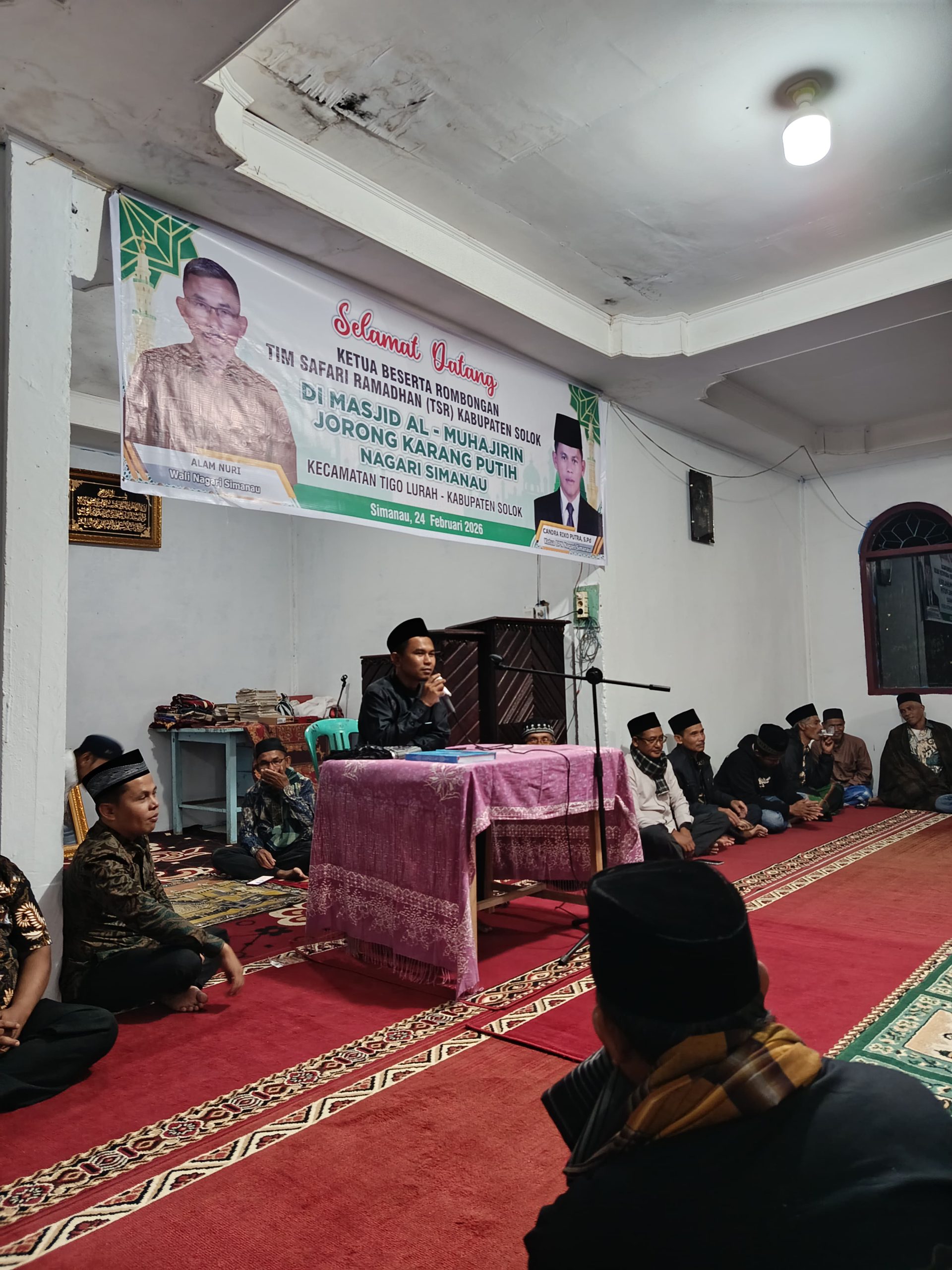 ‎Kabupaten Solok– respon.co.id |Kedatangan Tim Safari Ramadhan (TSR) VIII Pemerintah Kabupaten Solok di masjid Al- Muhajirin Jorong Karang Putiah nagari Simanau kecamatan Tigo Lurah Selasa 24/02/2026  sepi perangkat nagari.